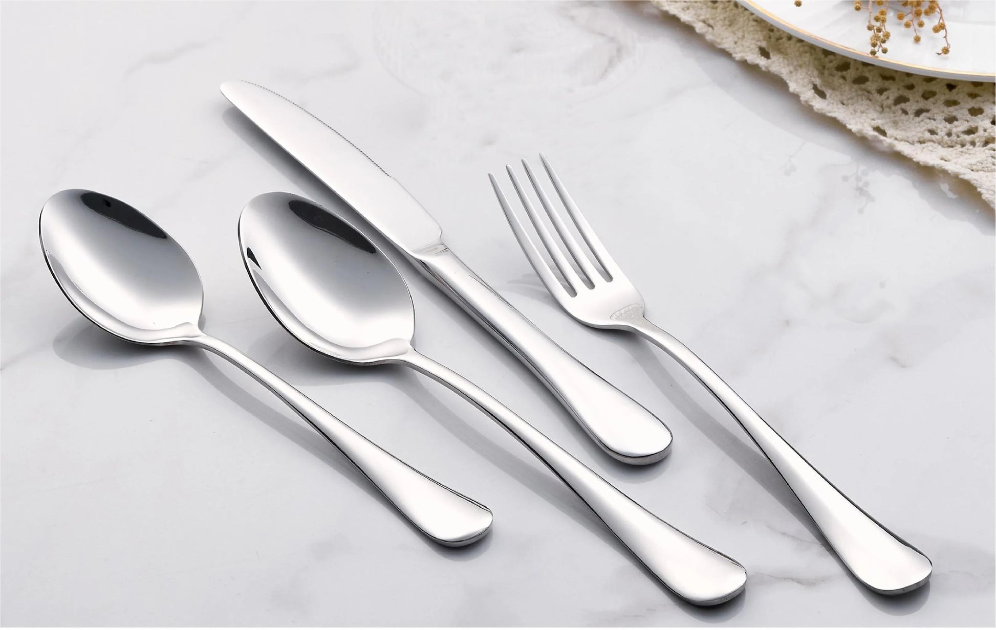 Each piece is designed with distinctive smooth rounded edges, offering a comfortable feel that embodies sophistication and grace. Inspired by royalty and elegance, this cutlery set adds a touch of regal charm to any dining occasion