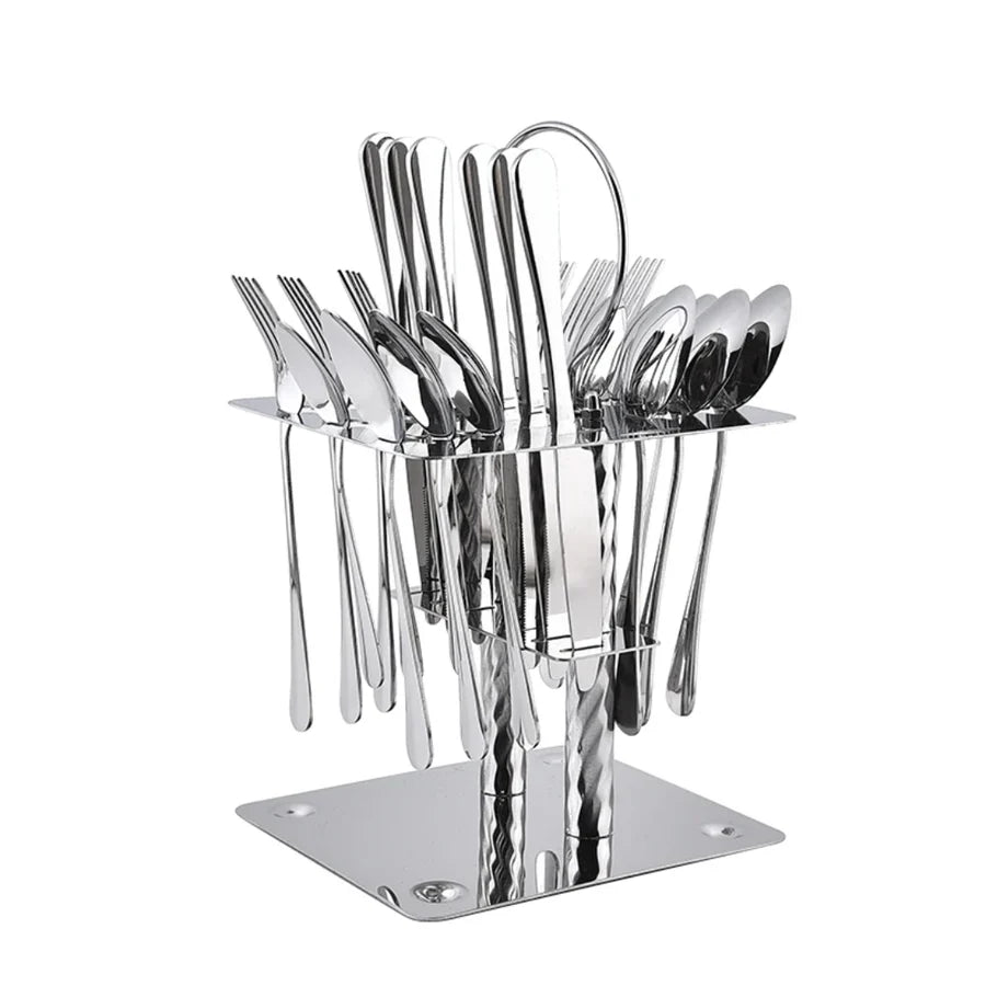 The 24 Piece Imperial Cutlery Set is a timeless masterpiece crafted from high-quality stainless steel ensuring elegance and durability. Elevate your dining experience with this exquisite collection, which includes 6 table spoons, 6 table forks, 6 table knives, and 6 tea spoons.